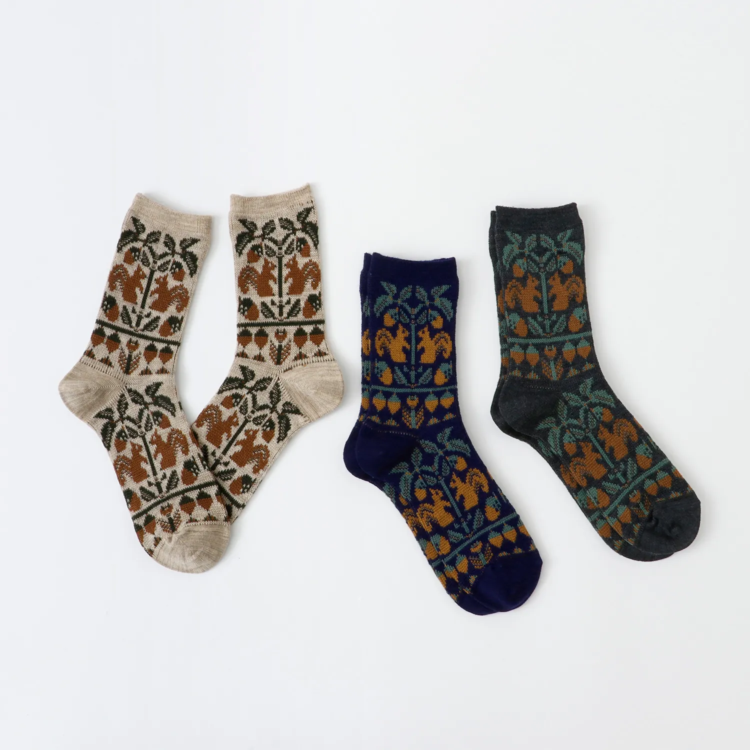 ストライプとお花柄のコンビネーションが北欧テイストなカバーソックス。